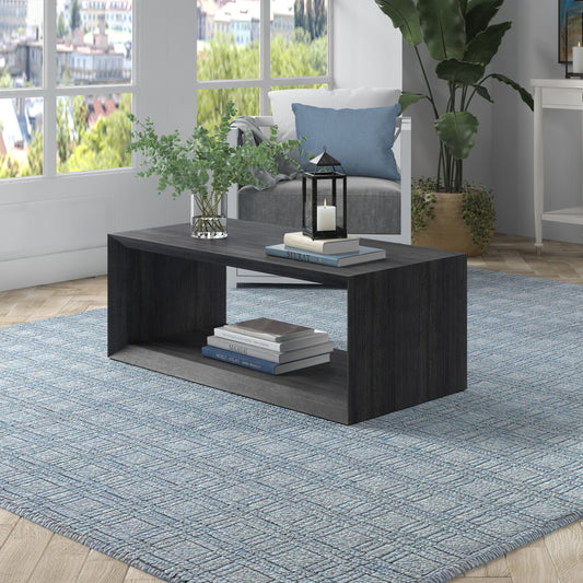 48" Cinnamon Manufactured Wood Rectangular Coffee Table With Two Drawers And Shelf