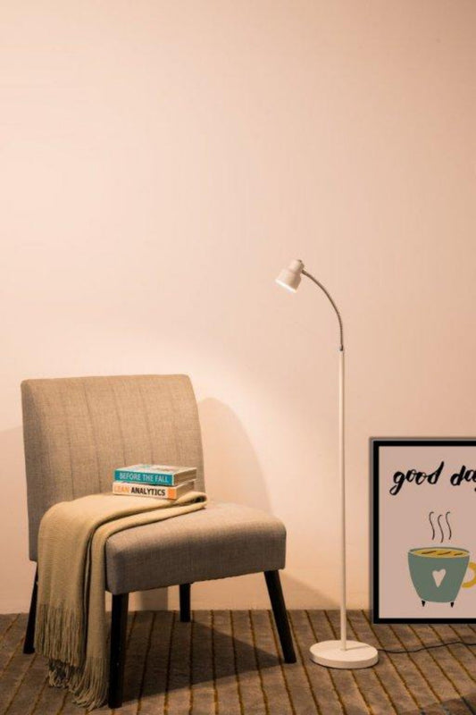 48" Steel Column Floor Lamp With Beige Drum Shade