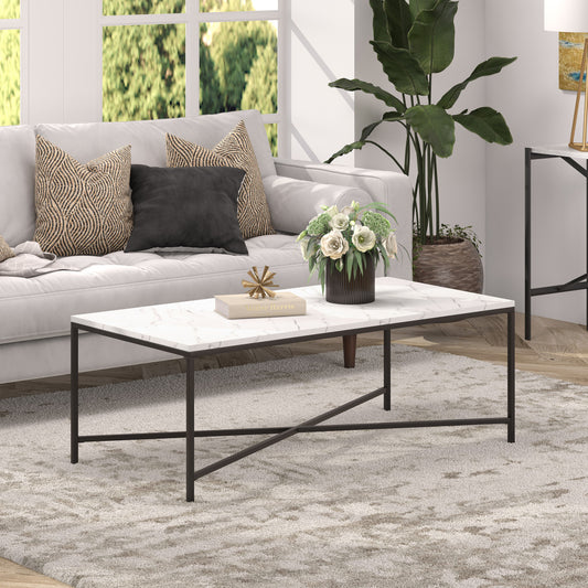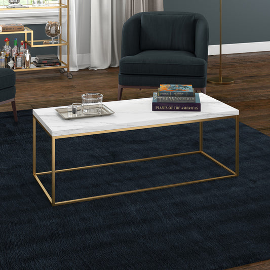 48" White Solid And Manufactured Wood Coffee Table With Drawer