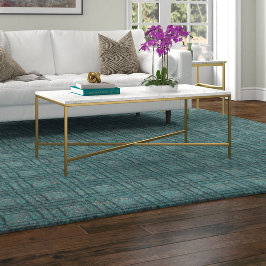 48" Walnut And White Stone Rectangular Coffee Table With Shelf