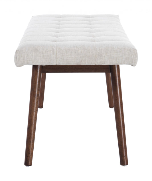 49" Beige Linen And Dark Brown Tufted Ottoman