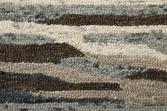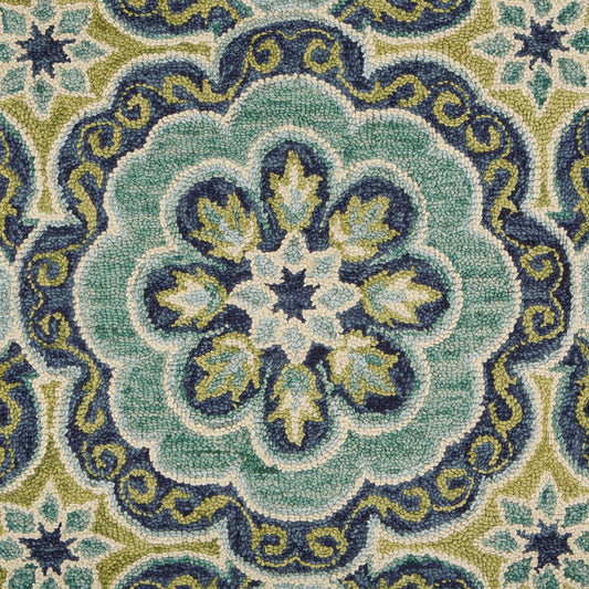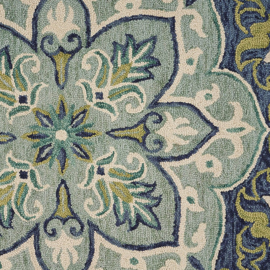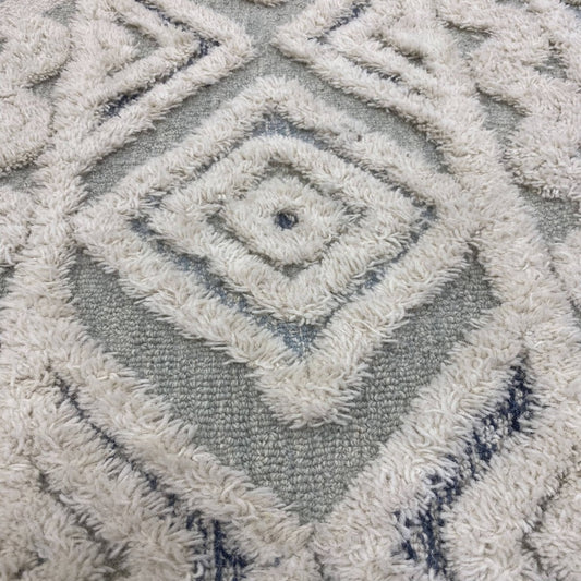 4’ Round Cream and Blue Stripe Diamond Area Rug