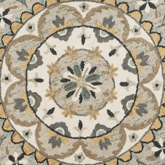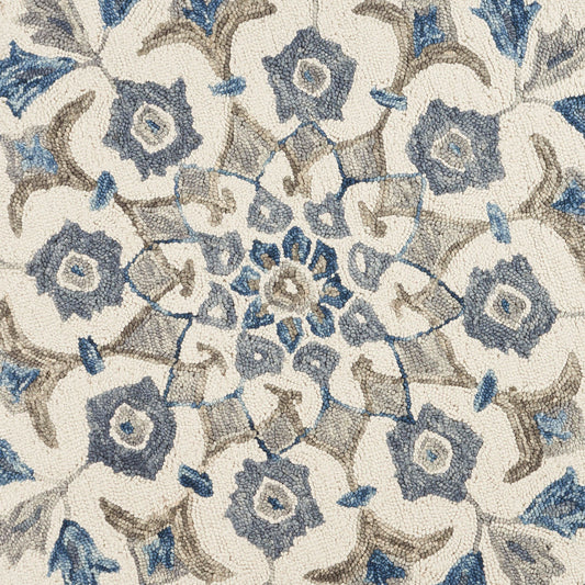 4’ Round Gray And Ivory Floral Bloom Area Rug