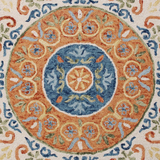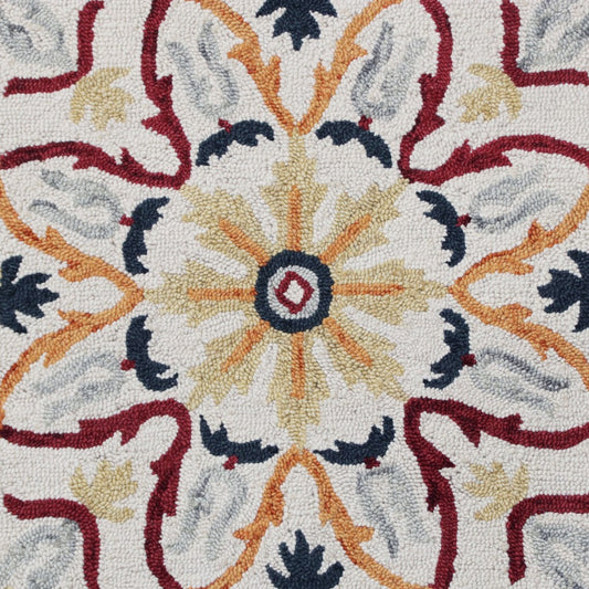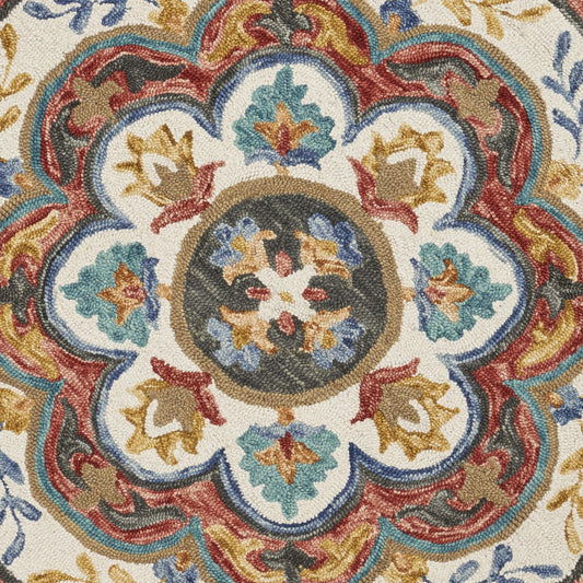4’ Round Red and Ivory Floral Filigree Area Rug