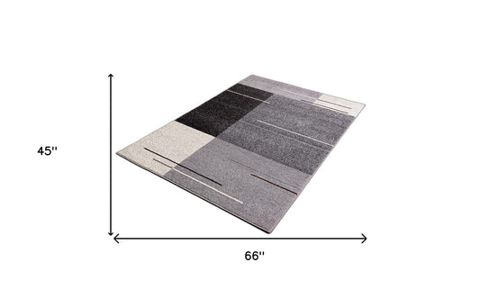 4’ X 6’ Gray Blocks And Rings Area Rug