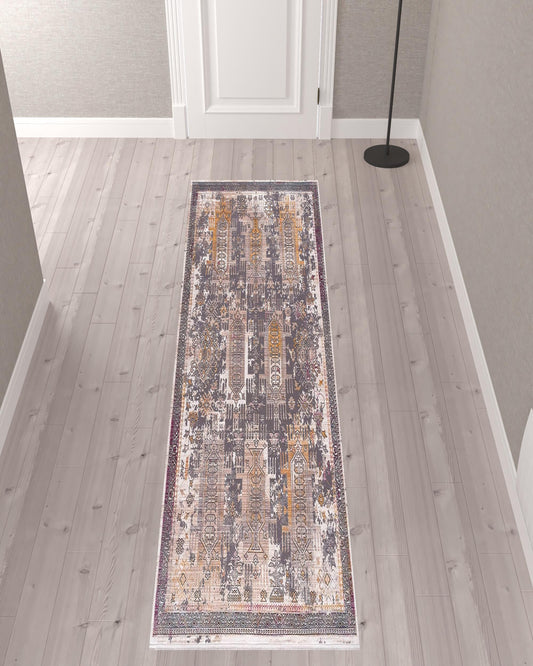 4’ x 6’ Gray Faded Tribal Motifs Area Rug