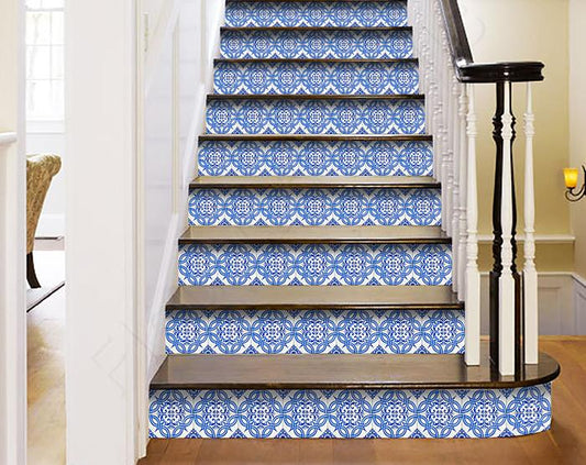 5" X 5" Blue White and Gold Mosaic Removable Tiles