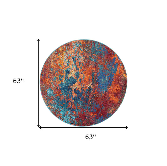 5' X 5' Multicolor Round Abstract Power Loom Non Skid Area Rug