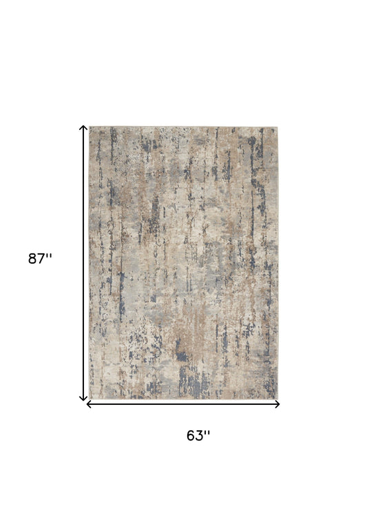 5' X 7' Beige And Grey Abstract Power Loom Non Skid Area Rug