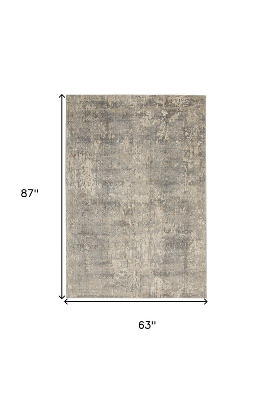 5' X 7' Beige And Grey Abstract Power Loom Stain Resistant Area Rug