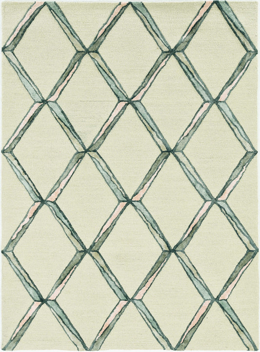 5' X 7' Cream Geometric Diamond Wool Indoor Area Rug