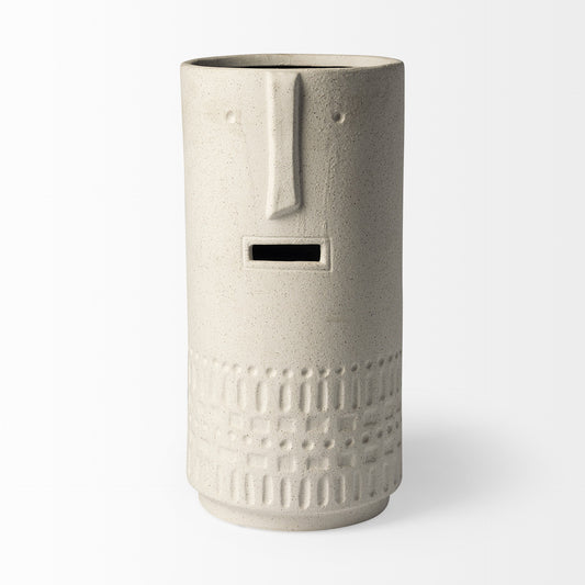 14" Ceramic Cream Geometric Cylinder Table Vase