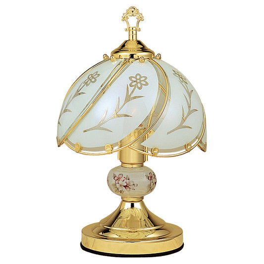 14" Gold Bedside Table Lamp With White Flowers Novelty Shade