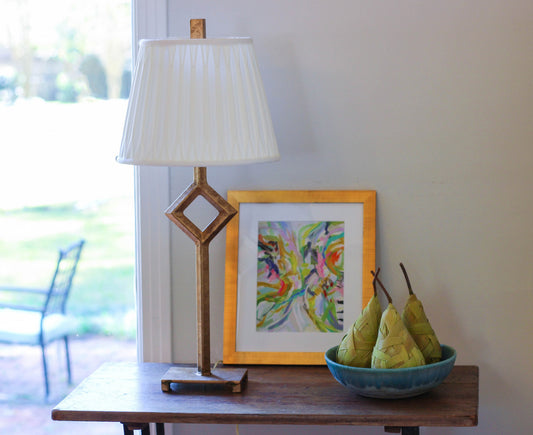 14" Cream Slanted Bell Smocked Paperback Shantung Lampshade