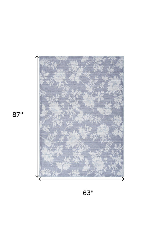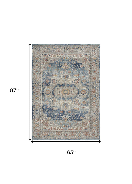 5' X 7' Grey Ivory And Blue Oriental Power Loom Stain Resistant Area Rug