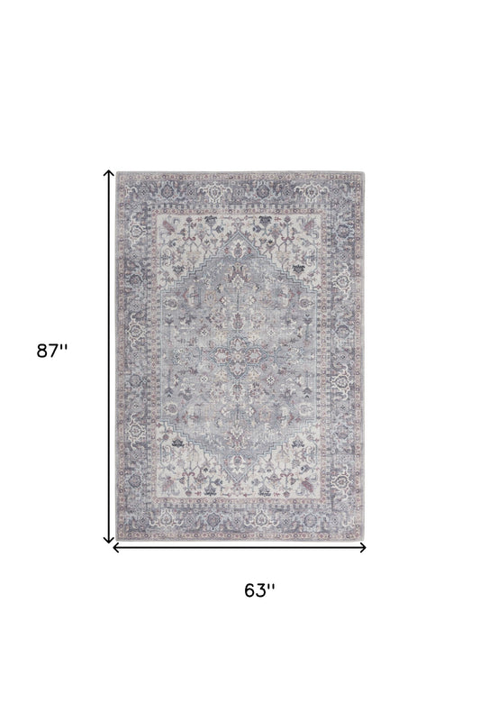 5' X 7' Grey Oriental Power Loom Distressed Washable Area Rug