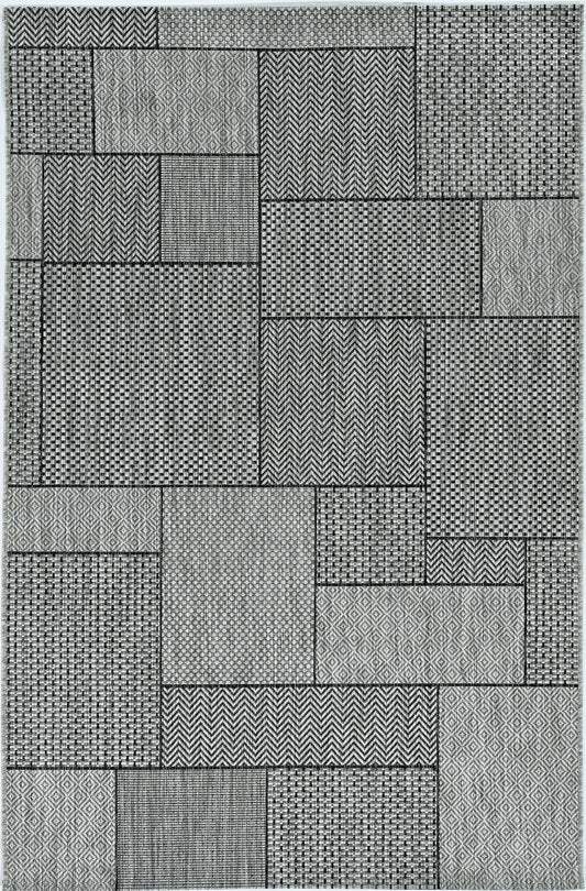 5' X 8' Grey Geometric Hand Woven Stain Resistant Area Rug