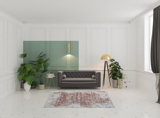 5' X 8' Rust And Gray Damask Distressed Stain Resistant Area Rug