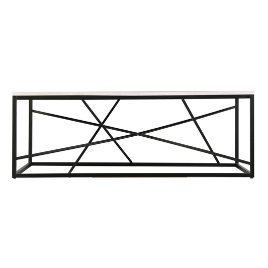50" Black And White Faux Marble and Metal Geo Rectangular Coffee Table