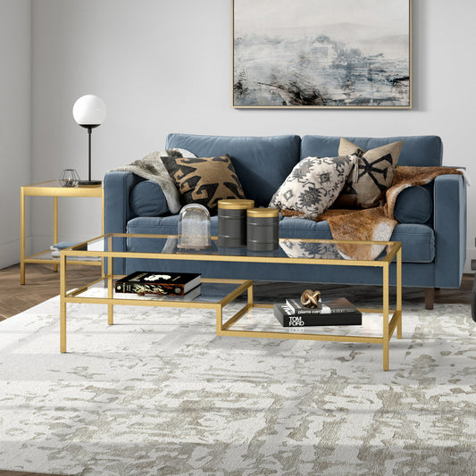 54" Gold Glass And Steel Coffee Table With Two Shelves