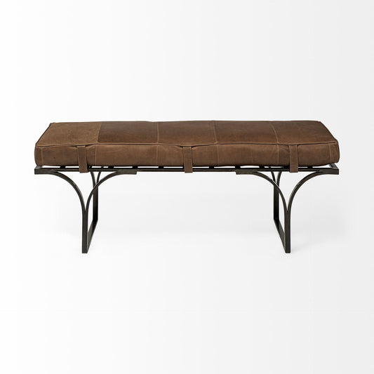 55" Brown and Black Upholstered Genuine Leather Bench