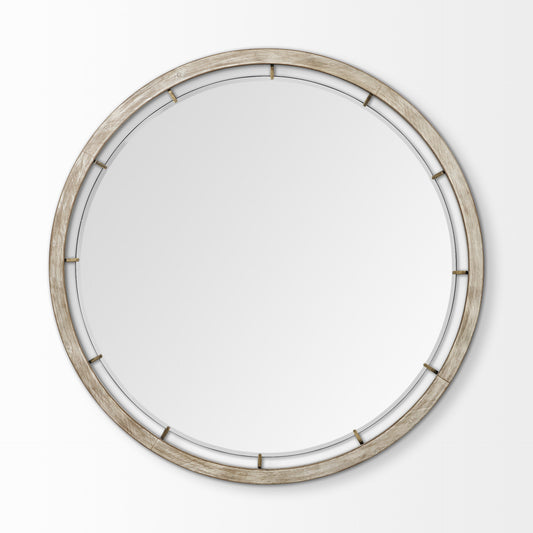 54" Round Brown Wood Frame Wall Mirror
