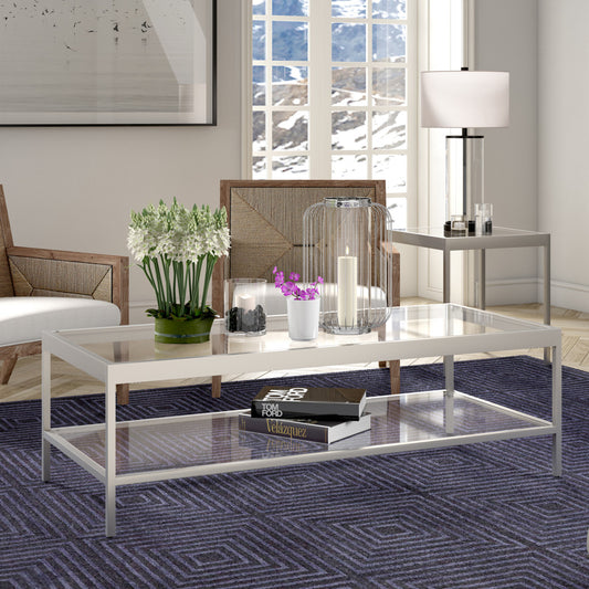 54" Silver Glass And Steel Coffee Table With Shelf