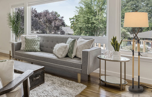 55" Black Traditional Shaped Floor Lamp With Tan Rectangular Shade