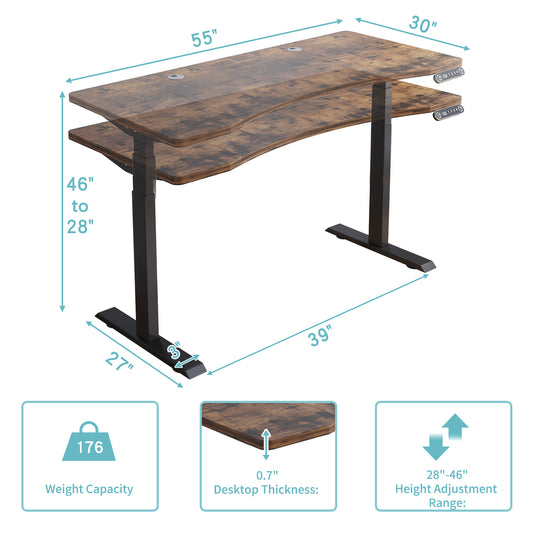 55" Adjustable Brown And Black And Black Standing Desk