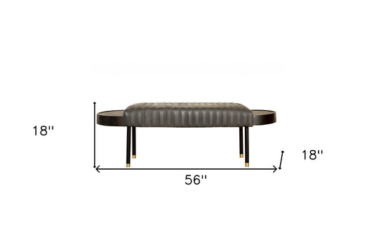 56" Green And Dark Brown Upholstered Velvet Dining bench