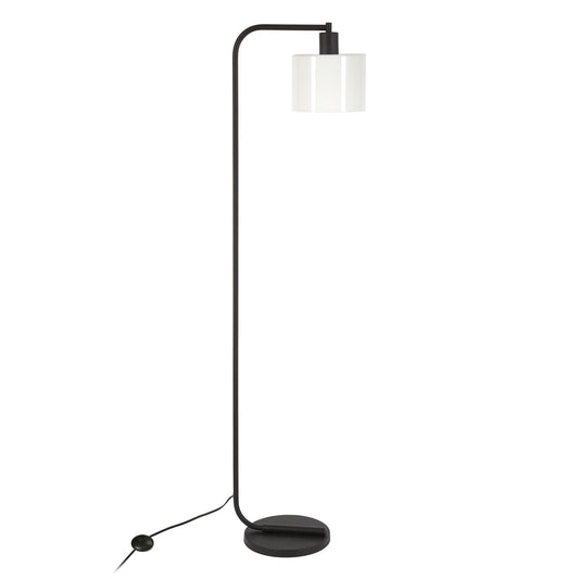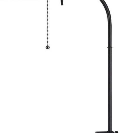 57" Black Arched Floor Lamp With White Frosted Glass Drum Shade