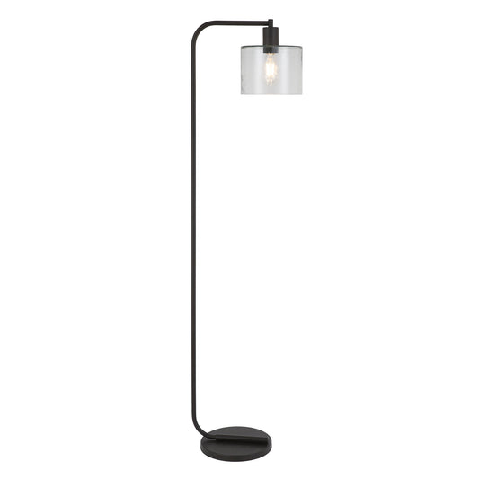 57" Black Arched Floor Lamp With Clear Seeded Glass Drum Shade