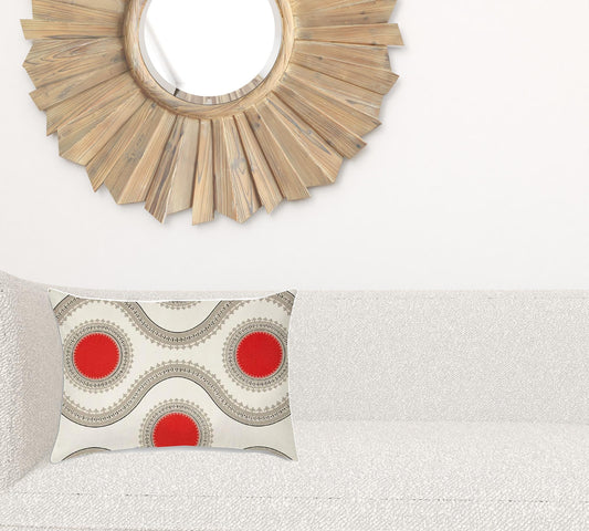 14" X 20" Beige Zippered 100% Cotton Throw Pillow With Embroidery