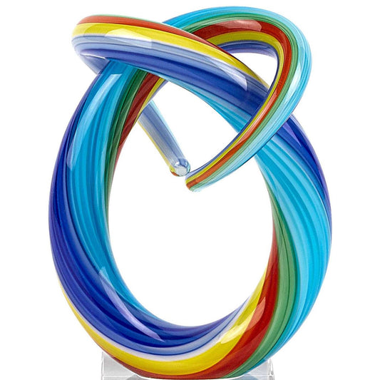 6" Clear and Rainbow Abstract Art Glass Sculpture