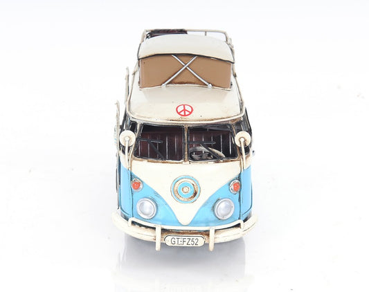 6" Blue And White Metal Volkswagen Bus Sculpture