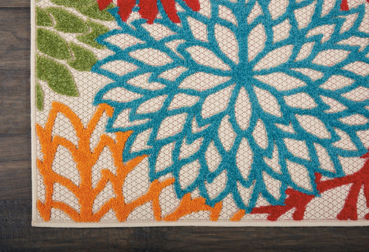 6' X 9' Green And Ivory Floral Indoor Outdoor Area Rug