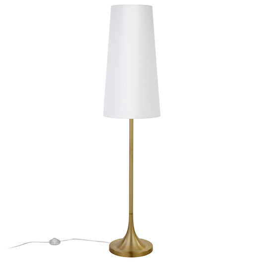 60" Brass Novelty Floor Lamp With White Frosted Glass Drum Shade