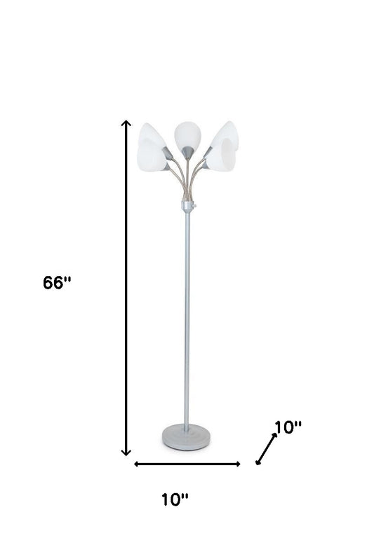 60" Grey Resin Five Arm Floor Lamp With White Cone Shades