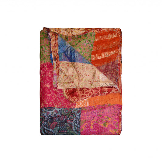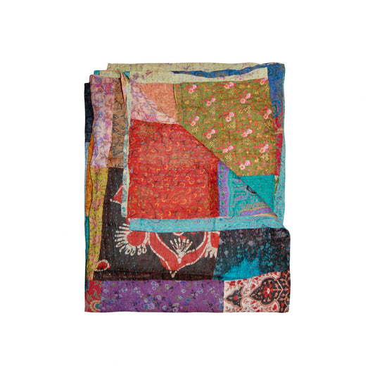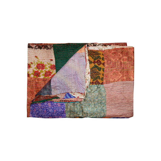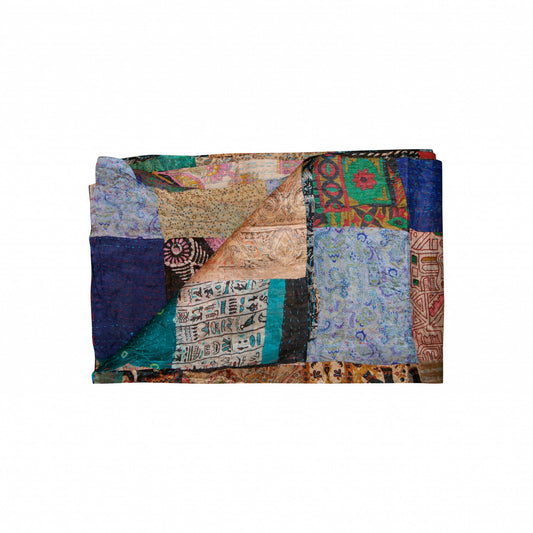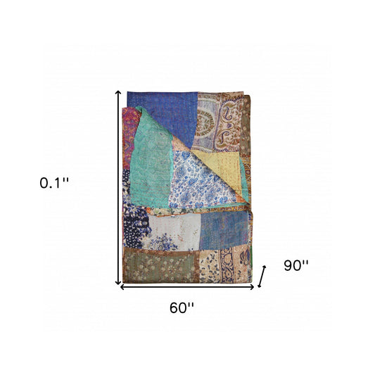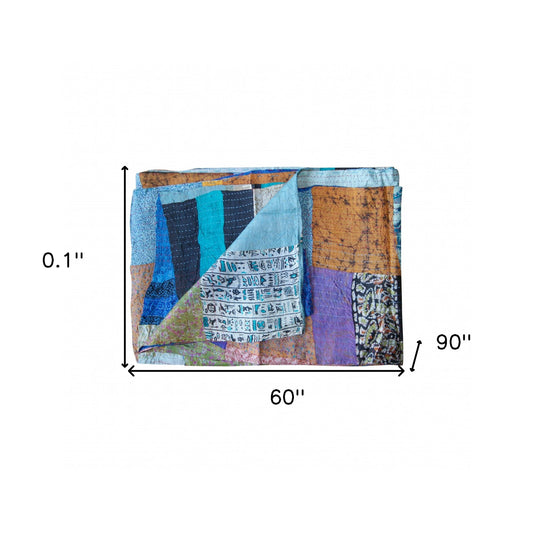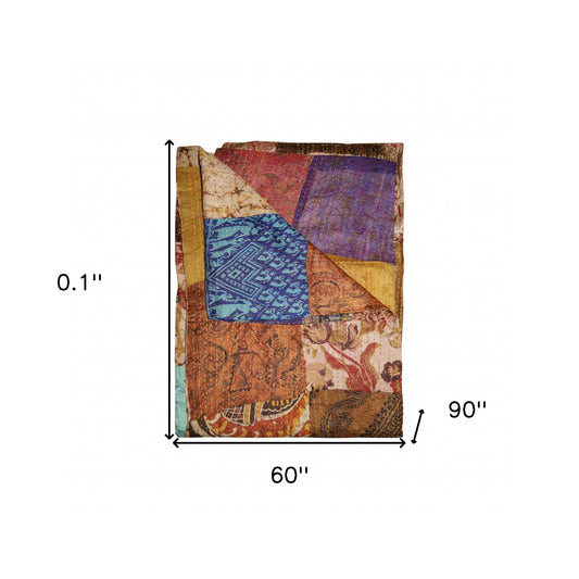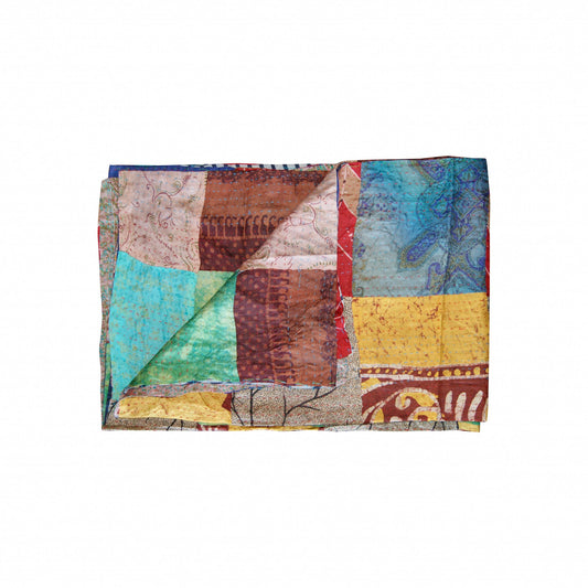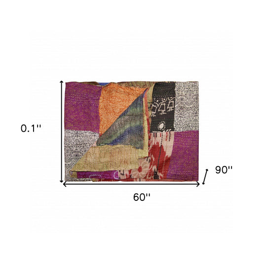 60" X 90" Multicolor Kantha Silk Throw Quilt Blanket