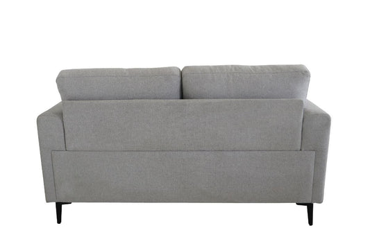 61" Dark Gray And Brown Linen Curved Love Seat And Toss Pillows