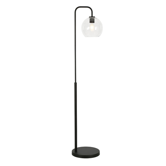62" Black Arched Floor Lamp With Clear Transparent Glass Globe Shade