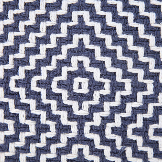 14" X 28" Navy And White 100% Cotton Geometric Zippered Pillow