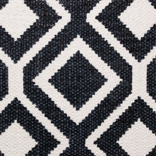 14" X 36" Deep Navy And White 100% Cotton Geometric Zippered Pillow