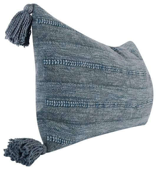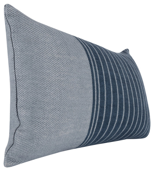 14" X 26" Blue Linen Striped Zippered Pillow