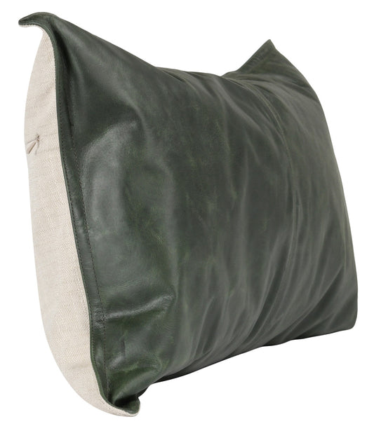 14" X 26" Green Leather Zippered Pillow