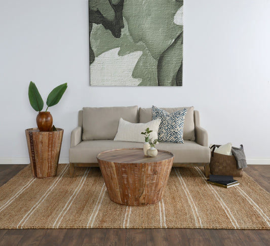 14" X 26" Ivory Linen, Jute Striped Zippered Pillow