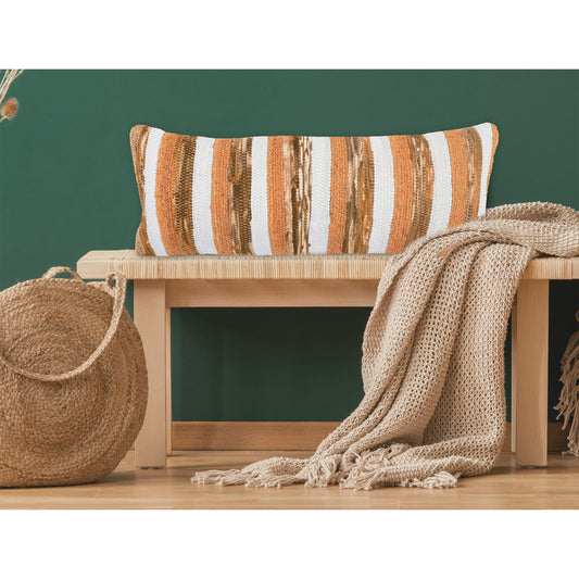14" X 36" Brown and Orange Striped Cotton Blend Zippered Pillow