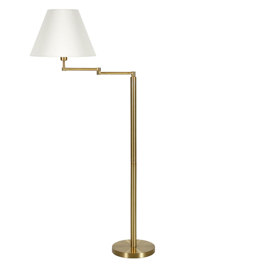 62" Brass Swing Arm Floor Lamp With White Frosted Glass Empire Shade