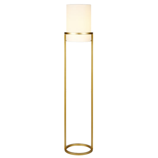 62" Brass Traditional Shaped Floor Lamp With White Frosted Glass Drum Shade