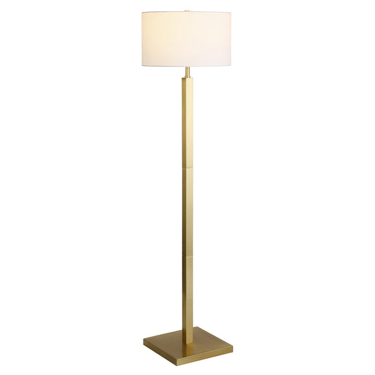 62" Brass Column Floor Lamp With White Frosted Glass Drum Shade